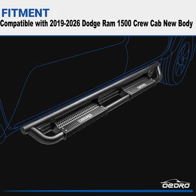 Compatible with 2019-2026 Dodge Ram 1500 Crew Cab New Body nerf bars steps.