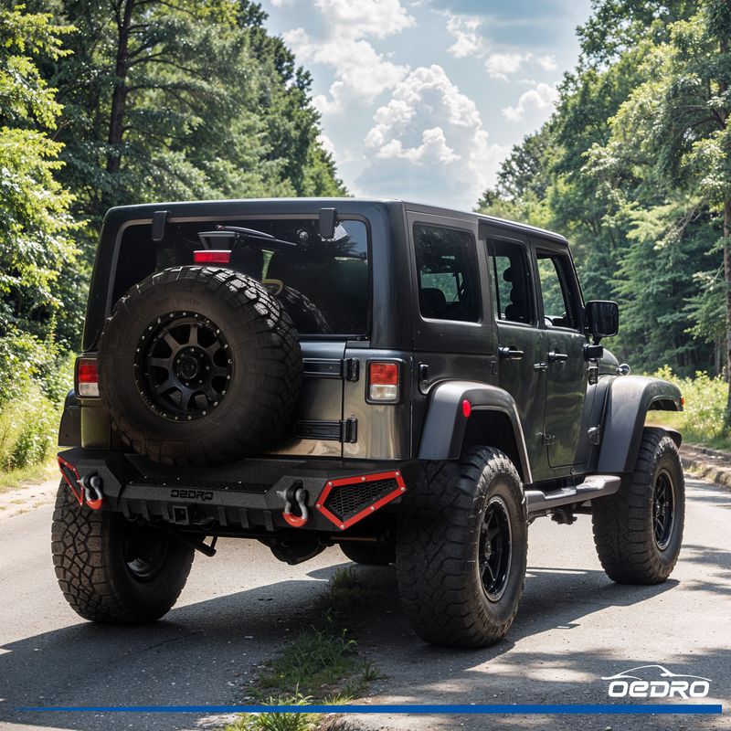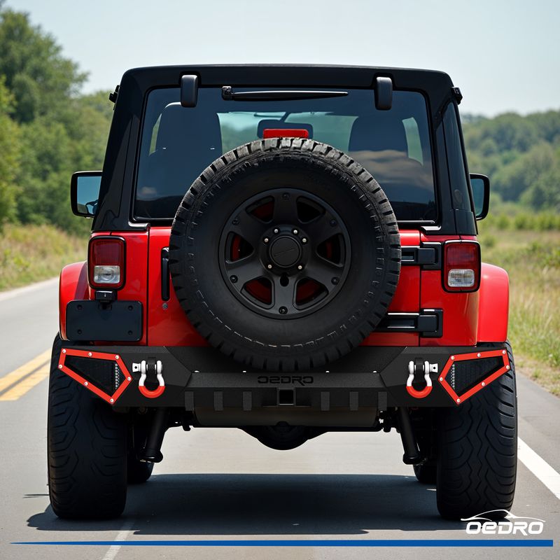 OEDRO Rear Bumper is made with 5/32" stamped steel sheets that bolster the strength of the weight-bearing region, This Bumper is winch compatible. Direct installation with no cutting or drilling required. The Jeep Wrangler JK Bumper is able to tow either 2,000 pounds or 3,500 pounds depending on the configuration you choose. Most two-door models have a tow rating of up to 2,000 pounds, while most 4-door models are able to tow 3,500 pounds.