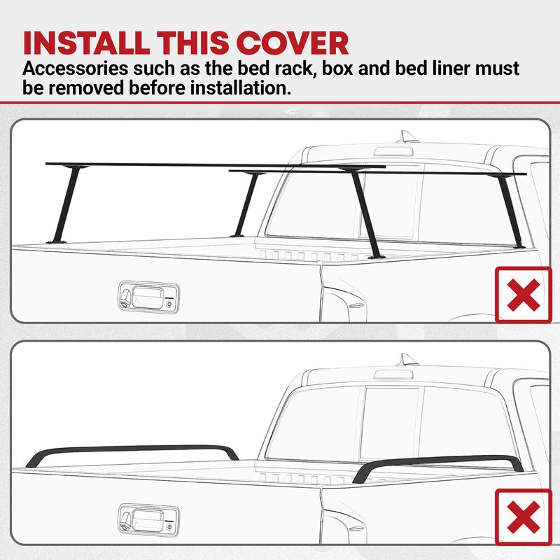 YITAMOTOR soft tonneau cover high-quality PVC frame and upgraded clamps are equipped to grant easy folding or removal, facilitating your various cargo loading and retrieval needs.