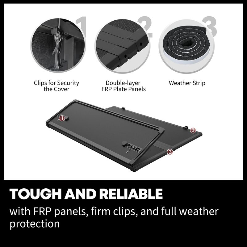 YITAMOTOR soft tonneau cover high-quality FRP frame and upgraded clamps are equipped to grant easy folding or removal, facilitating your various cargo loading and retrieval needs.