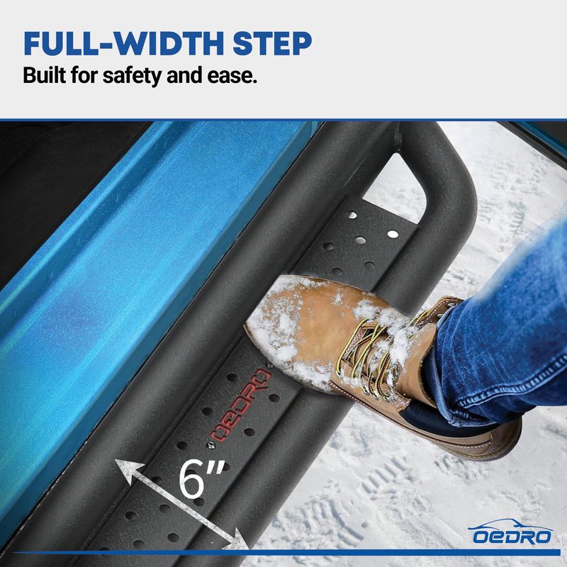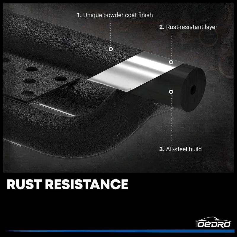 The OEDRO running board has a unique powder coating finish, and the carbon steel surface has a rust-proof layer, which is rust-proof and durable.