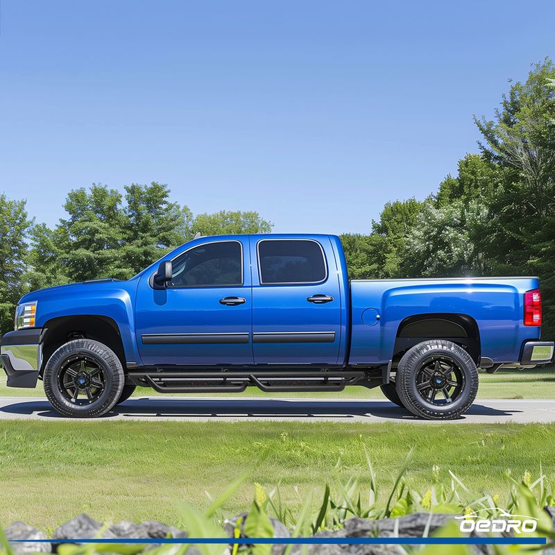 OEDRO drop running boards will be perfectly compatible with the 2007-2018 Chevy Silverado/GMC Sierra 1500 Crew Cab & 2007-2019 2500/3500HD. The three tubes are designed to provide more protection for the bottom and side of the car, or they can prevent the rocker or suspension of obstacles.