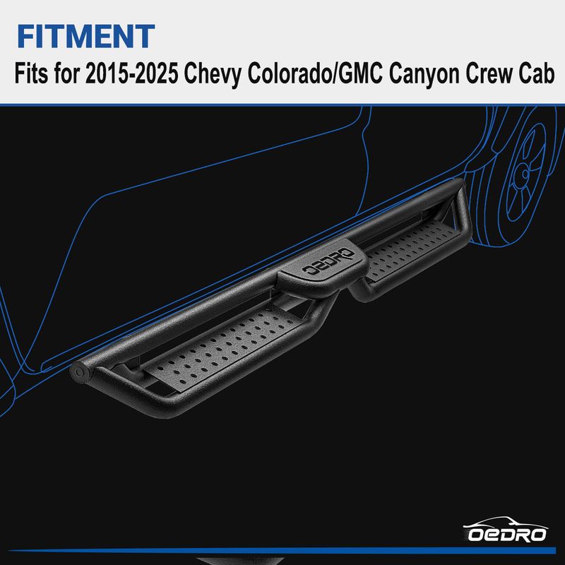 OEDRO drop running boards will be perfectly compatible with the 2015-2026 Chevy Colorado Crew Cab & 2015-2026 GMC Canyon Crew Cab. The three tubes are designed to provide more protection for the bottom and side of the car, or they can prevent the rocker or suspension of obstacles.