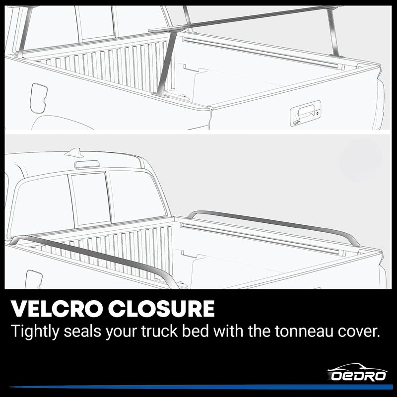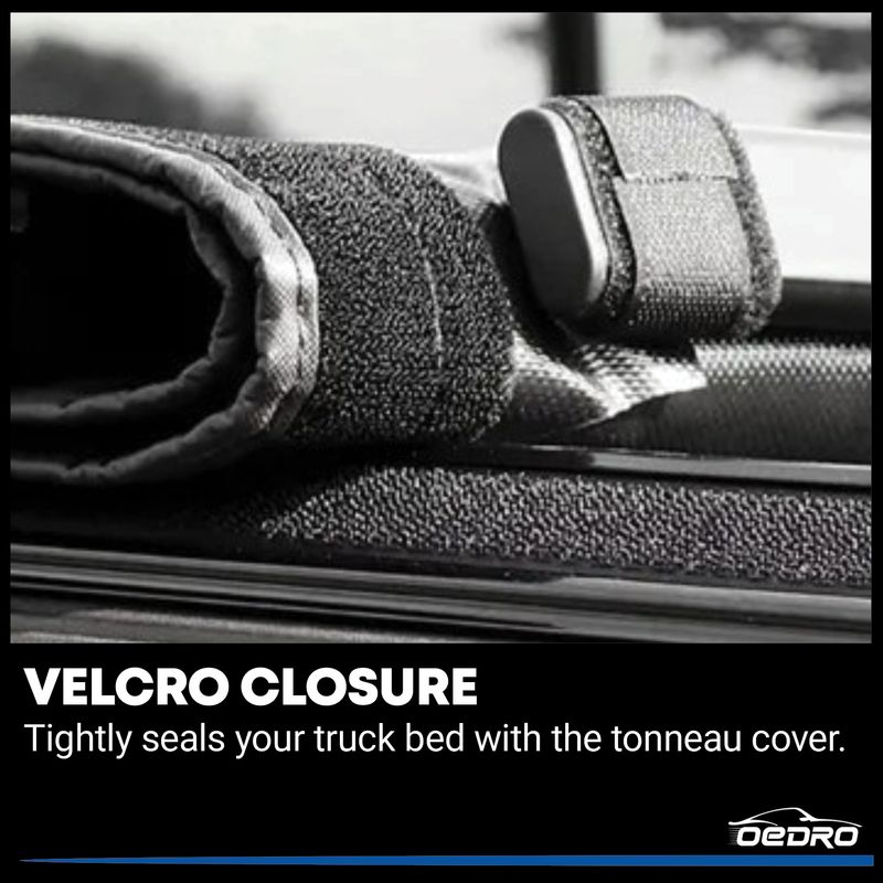 The rails of OEDROs soft roll-up tonneau cover attach seamlessly to your trucks bed caps and are covered with industrial strength Velcro which secures the cover to the bed.