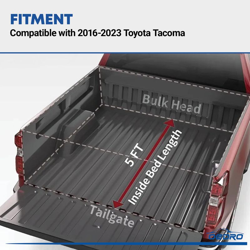 OEDRO truck bed tonneau cover is compatible with the 2016-2023 Toyota Tacoma. OEDRO's soft roll-up truck tonneau cover is located on the top of the bed rail and looks stylish. Attach the trunk lid to the side rails to keep them tight and taut while reducing wear.