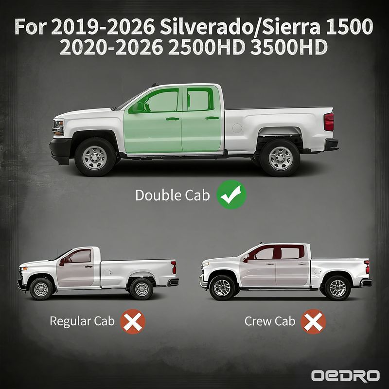 Compatible with 2019-2026 Chevy Silverado 1500/ GMC Sierra 1500 Double Cab;