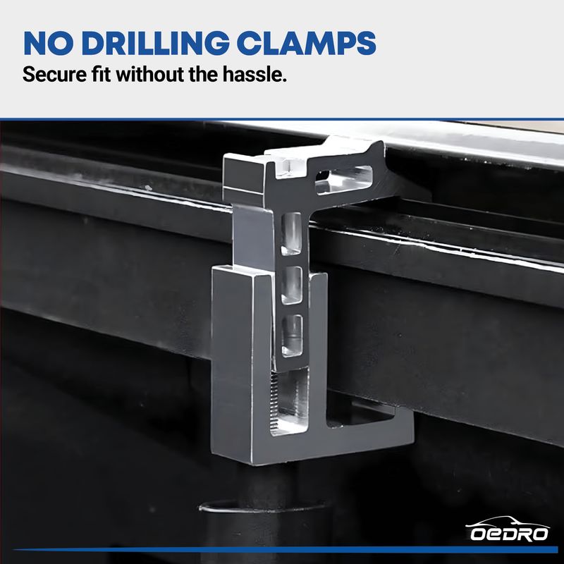 Clamp-on aluminum rails make setup fast and tool-light. No drilling or special hardware required—just secure the clamps, tighten, and you’re ready to hit the road in under 20 minutes.