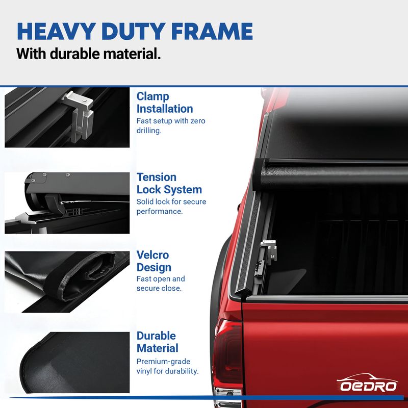 Enhanced Aesthetics. OEDRO tonneau cover can provide a neat, clean look. Drivers with beds that are old, rusty, or otherwise dinged up can easily cover up the damage with a quality truck bed cover that keeps all of your possessions hidden from view.