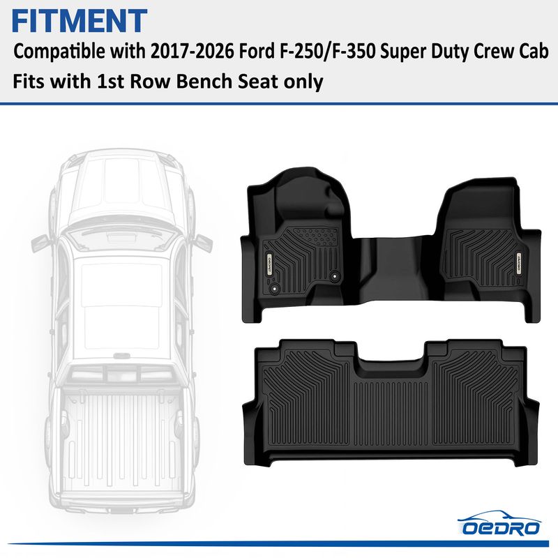 The OEDRO floor liner is compatible with the 2017-2026 Ford F-250/F-350 Super Duty Crew Cab. And not suitable for vehicles with vinyl flooring. Made by a unique precision digital laser scanning, it can protect the front and rear of the vehicle's foot space.