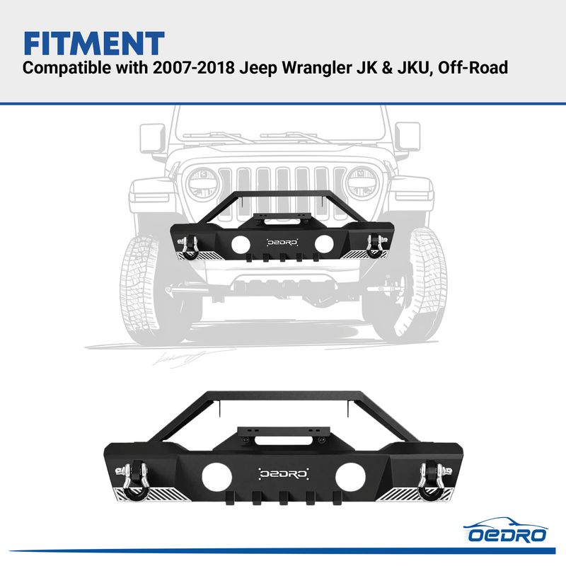 Stubby Front Bumper compatible with 2007–2018 Jeep Wrangler JK / JKU (2 & 4 Door). Upgrade your Jeep Wrangler’s front-end recovery and protection with this heavy-duty stubby front bumper, specifically designed for 2007–2018 Jeep Wrangler JK and JKU models (2-door & 4-door).