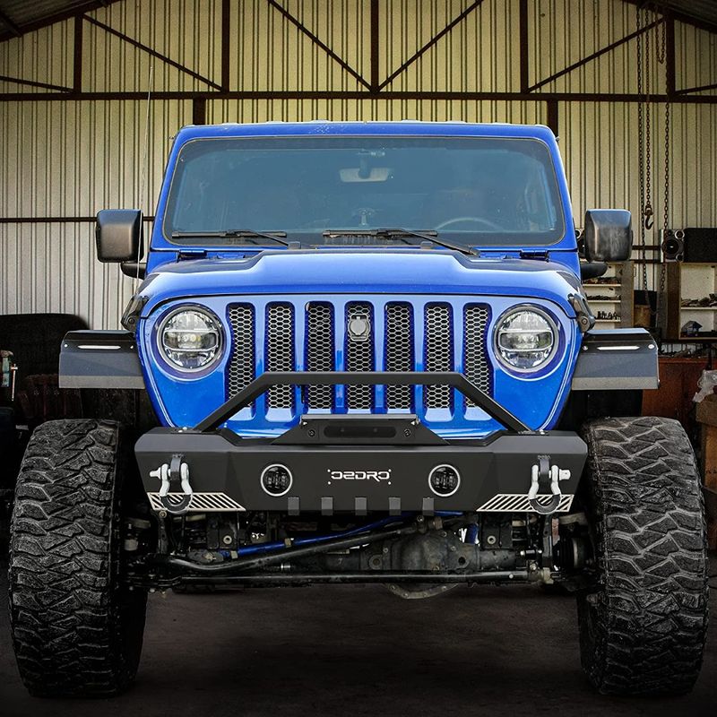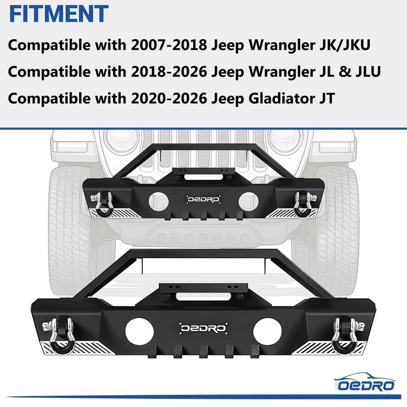 Compatible with 2007-2018 Jeep Wrangler JK/JKU, 2018-2026 Jeep Wrangler JL & Unlimited JLU (2/4 Doors),2020-2026 Gladiator JT stubby front bumper adopts standard 10" x 4.5" bolt style design, with integrated fairlead, thick winch suitable for most up to 8,000 pounds The winch allows you to increase the recovery capacity of the front of the vehicle.