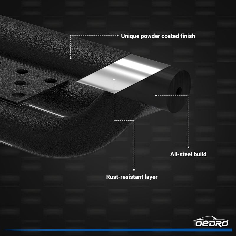 OEDRO running boards feature welded brackets and an carbon steel construction for exceptional strength and maximum rocker panel protection. Designed for quick and easy installation with minimal accessories—no cutting or drilling required.