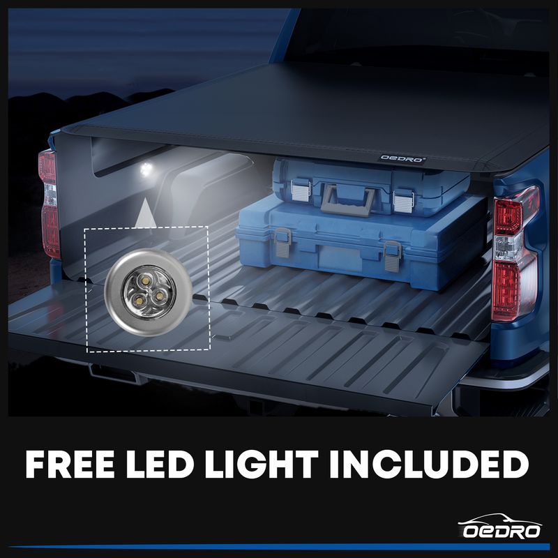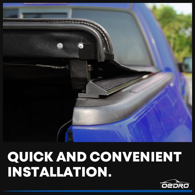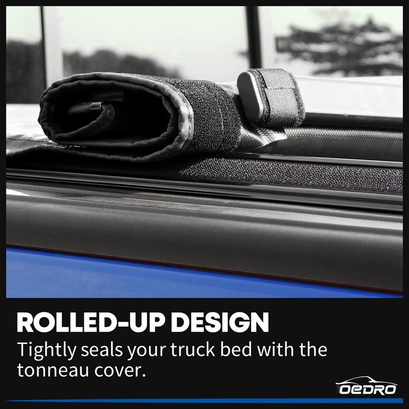 OEDRO Soft Roll-Up Tonneau Cover, designed specifically for 2015-2026 models with a 5.5ft bed Supercrew Cab. This durable cover offers full protection against dust, water, and UV rays, thanks to its robust double-layer PVC construction. The innovative Tension Latch System allows for convenient access, while the easy no-drill installation ensures you can set it up without damaging your truck. Enjoy enhanced functionality and peace of mind on every journey!