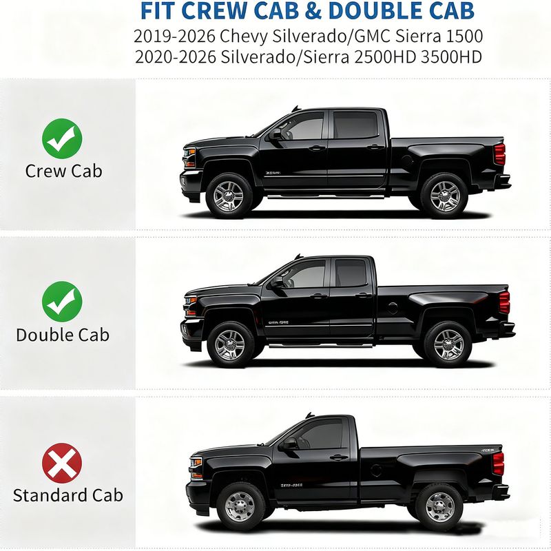 Fit for 2019-2026 Chevy Silverado /GMC Sierra 1500 Double Cab & Crew Cab.