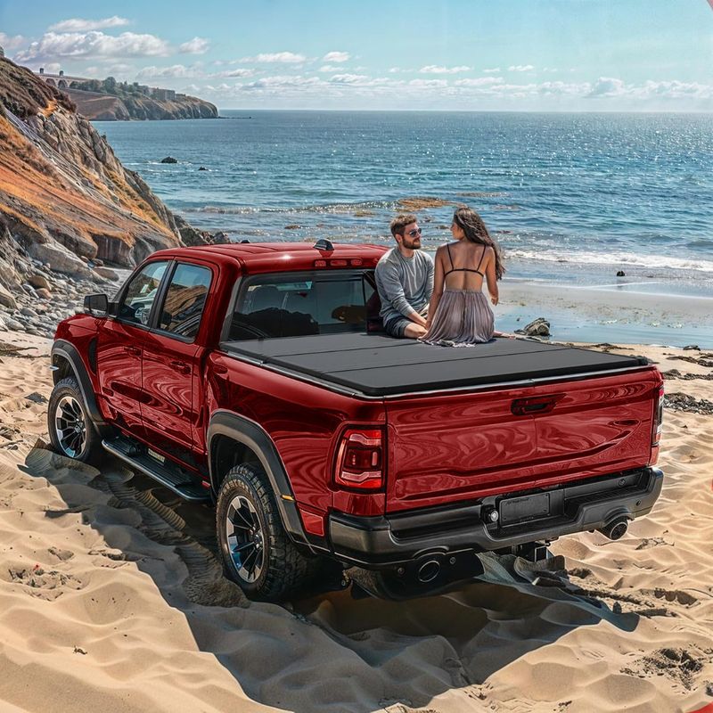 Enhance your truck's security and convenience with our premium hard Tri-Fold tonneau cover. Designed for effortless operation, it automatically latches into place when folded down—no manual locking required. Enjoy a sleek, durable design that protects your cargo while ensuring quick and easy access.
