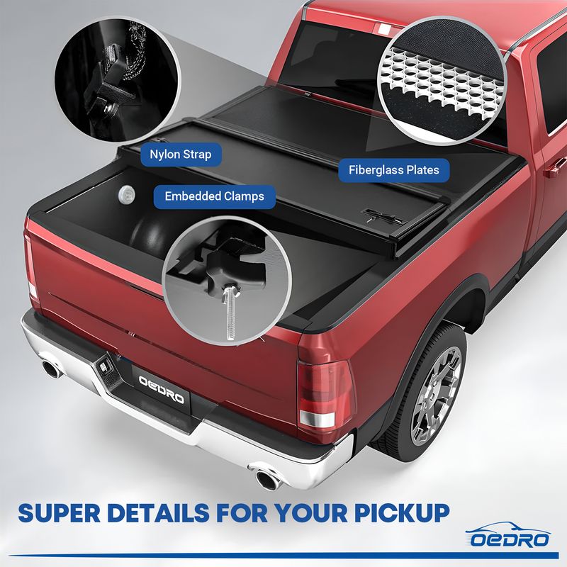 Heavy-Duty Durability You Can Trust: Reinforced fiberglass panels deliver long-lasting strength and impressive load-bearing capacity. A robust locking system keeps the cover firmly closed while driving, giving you confidence on every trip.
