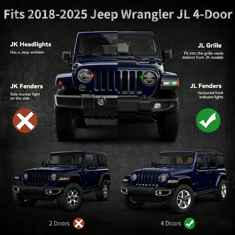 Compatible with 2018-2025 Jeep Wrangler JL 4 Door.