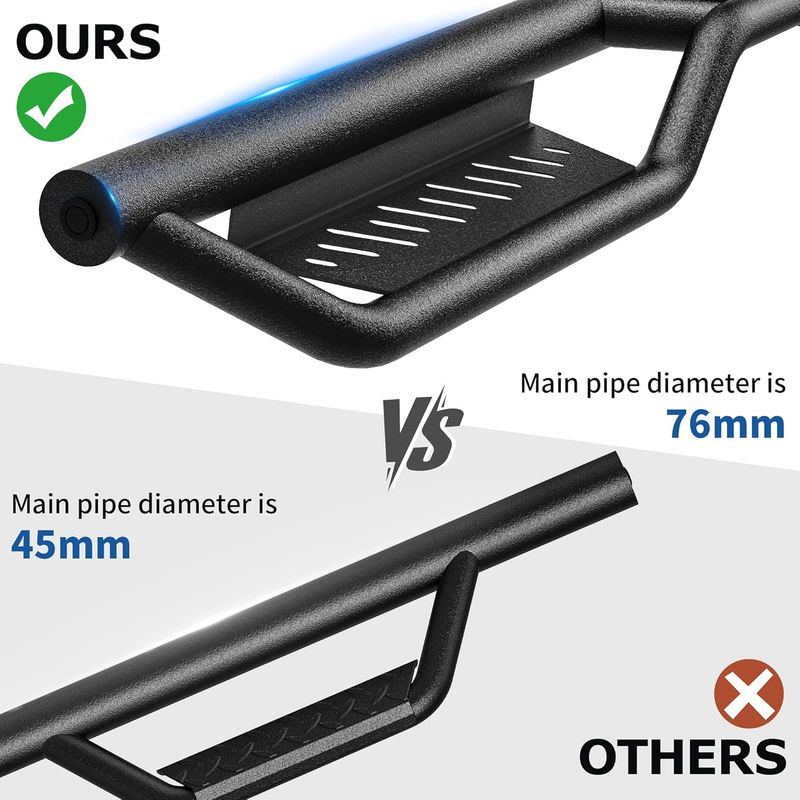 6-inch side pedals.: The two-level layout provides better convenience for vehicles equipped with lifting kits and oversized tires.