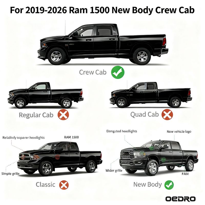 Compatible with 2019-2026 Dodge Ram 1500 Crew Cab(4 Full Size Doors)