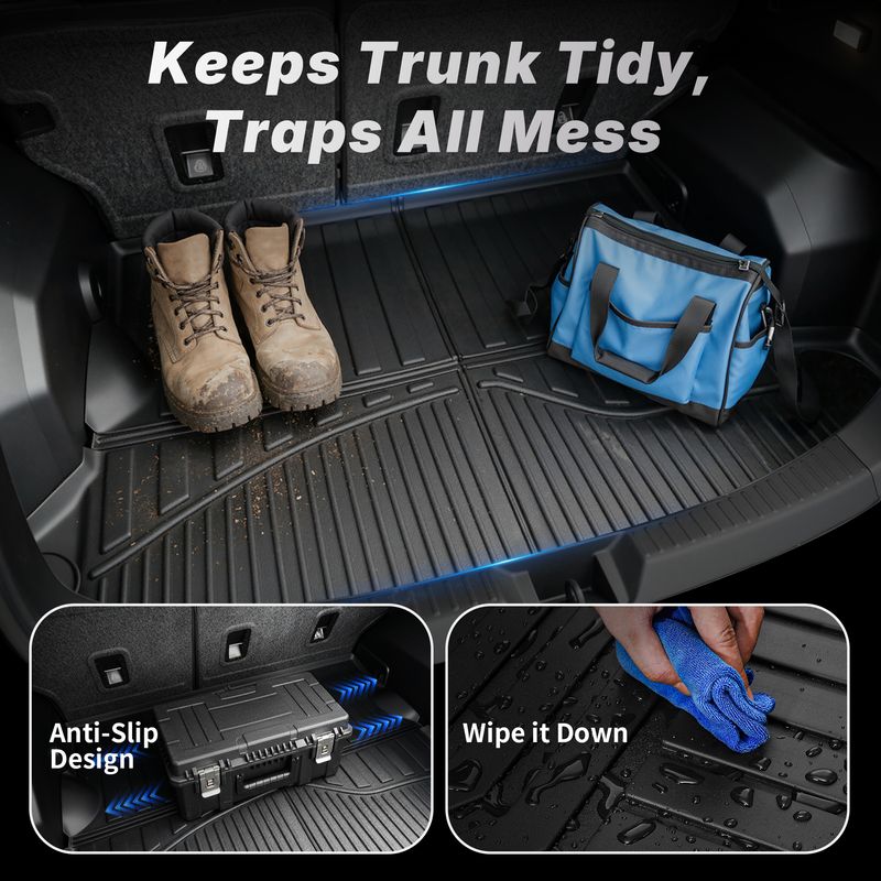 Crafted from GRS-certified recyclable TPE, these mats are safe, odor-free, and tough enough for daily driving, family use, and pets. The included trunk mat with backrest coverage adds an extra layer of protection when hauling cargo or folding down rear seats. From muddy boots to accidental spills, OEDRO keeps your cabin clean, comfortable, and looking new—mile after mile.