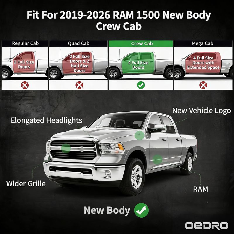 Compatible with 2019-2026 Dodge Ram 1500 New Body Crew Cab.