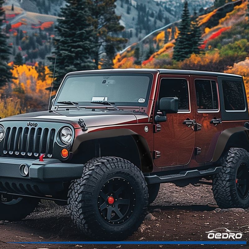 OEDRO Solid Steel Fender Flares Compatible with 2007-2018 Jeep Wrangler JK & Unlimited Off-Road Front & Rear Flat 4 PCS Set. OEDRO fender flares are made of durable stainless steel and a high-quality textured black powder coat.