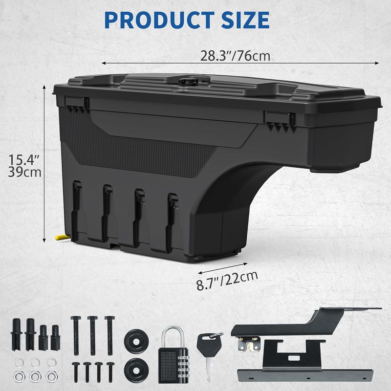 Dual-Layer Anti-Theft Security: Features a built-in self-locking lid to secure stored items, paired with a precision combination padlock that locks the mounting bracket for added protection. Keeps valuable tools and equipment safe from theft in any environment.