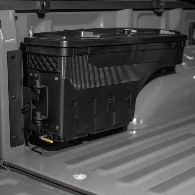 180° rotating design allows you to swing the box out for easy access and fold it back when not in use. Keeps tools, gear, and essentials neatly organized without taking up precious bed space.