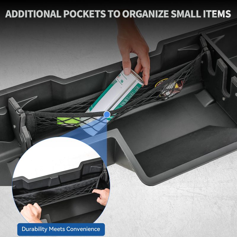 OEDRO Built with the latest upgraded technology, this under-seat storage box is odor-free, even in extreme heat or cold. Made from high-quality materials, it provides a clean, durable, and reliable storage solution for your truck. Securely store fishing rods, tools, and daily gear—everything stays firmly in place without sliding or shifting during driving.
