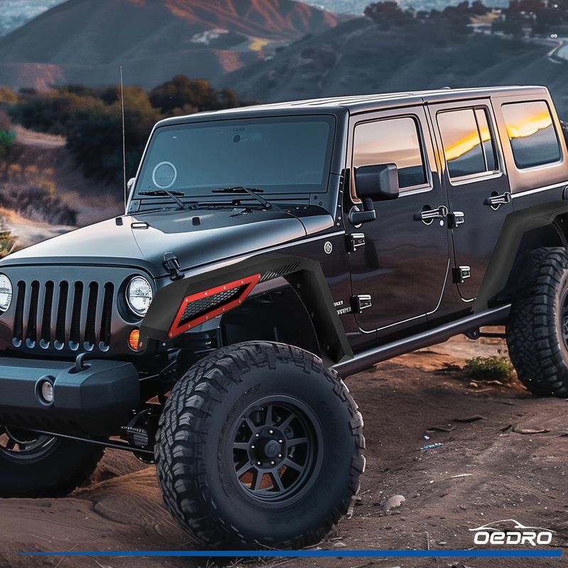Solid Welded Steel. Featured with a narrower width and tangent surface design, OEDRO fenders are constructed with durable steel to protect your Wrangler from debris and mud in the off-road trail.