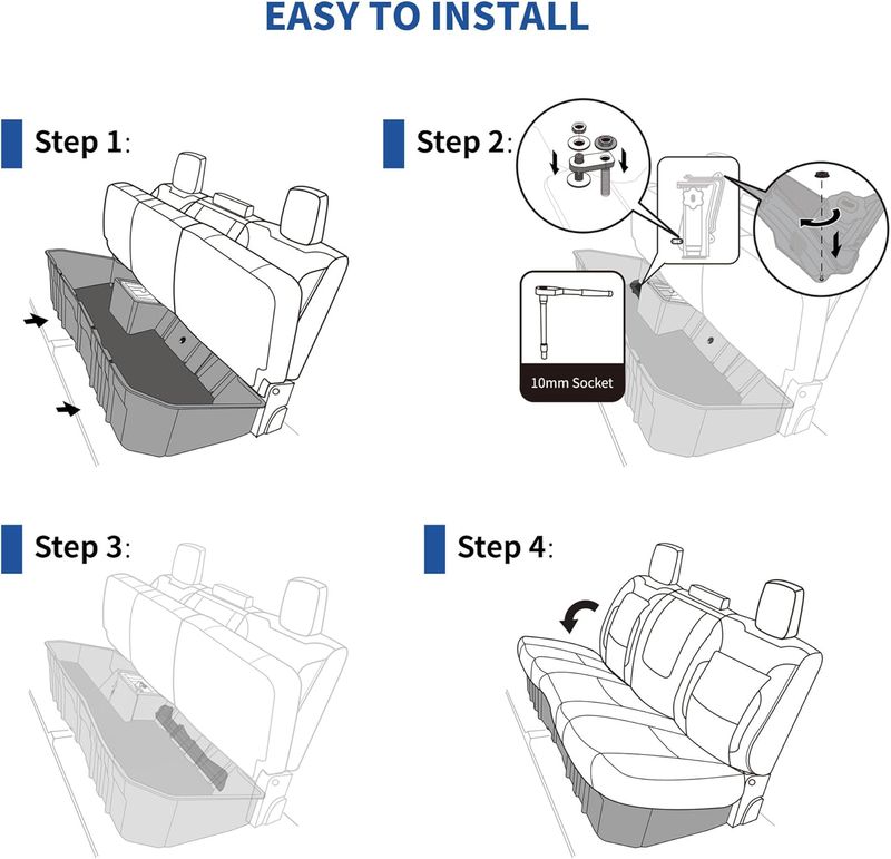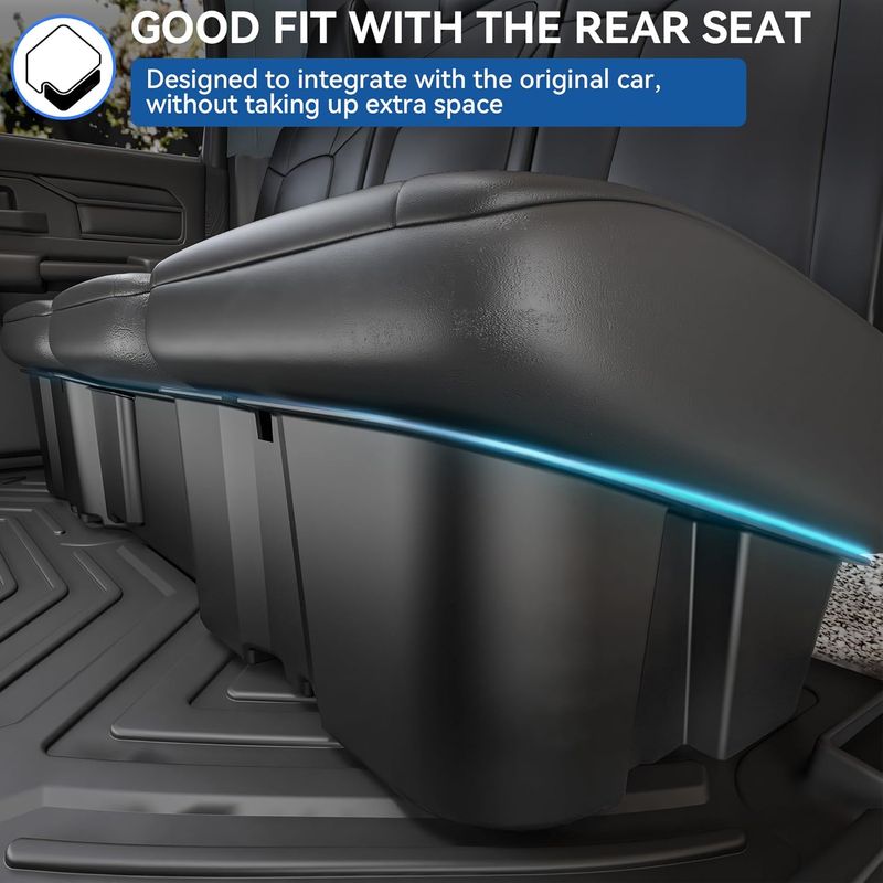 Made of tough, durable materials, Big Storage Capacity. the Under Seat Storage Box offers a textured black non-slip surface that keeps your stuff from sliding around and becomes more organized.
