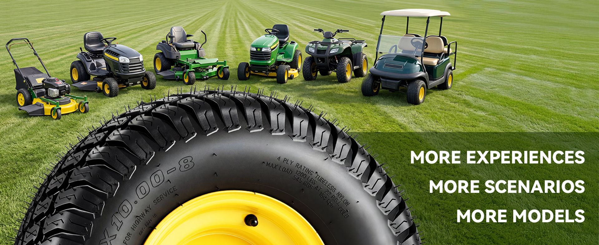 TURF-FRIENDLY & HIGH-PERFORMANCE TREAD: The unique tread pattern boosts traction while minimizing lawn damage. The wide, flat footprint spreads pressure evenly, reduces noise, improves heat dissipation and water drainage, and gives you better handling, smoother ride, and quieter operation.