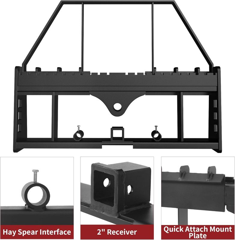 Suitable for most loaders and tractors; Compatible with Bobcat Skid Steer, New Holland and Kubota tractors; Ideal for handling most farm, warehouse and construction site work.