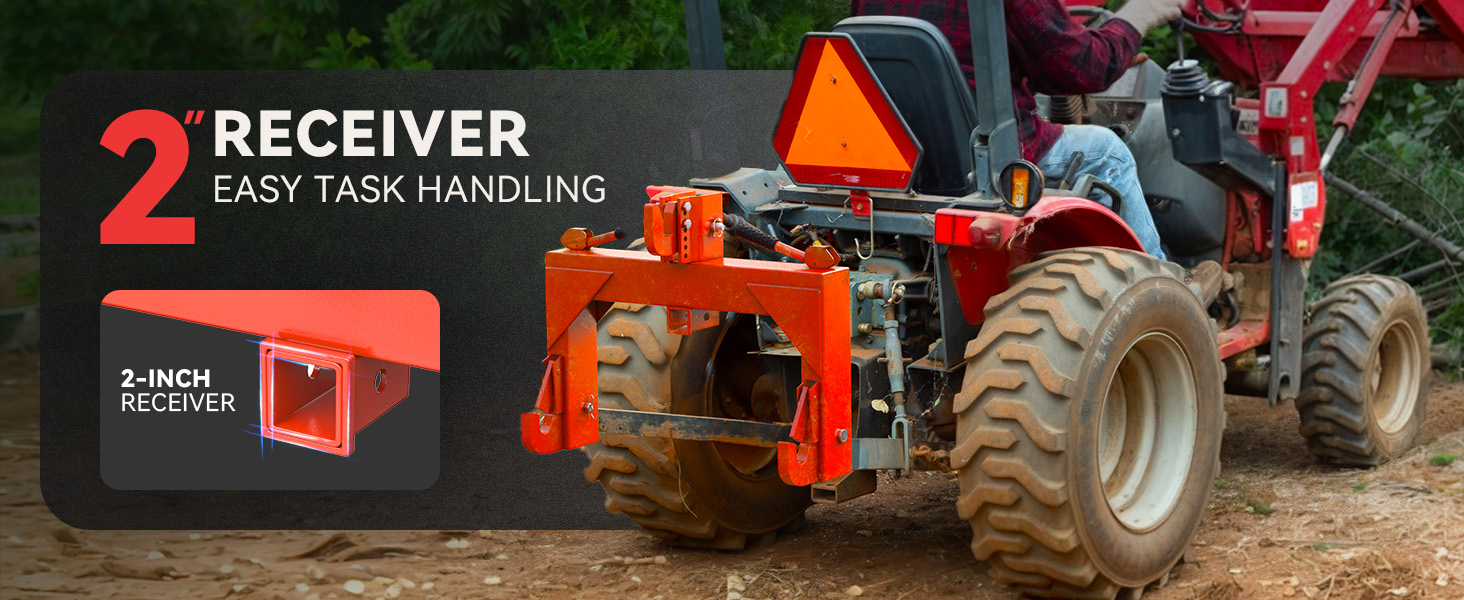 WIDE COMPATIBILITY: This 3-point quick hitch fits most Category 1 tractors and includes a 2-inch receiver for attaching a trailer ball or other attachments. Handle everything from field work to hauling - meets a variety of farming and towing needs with one tough, time-saving connection.
