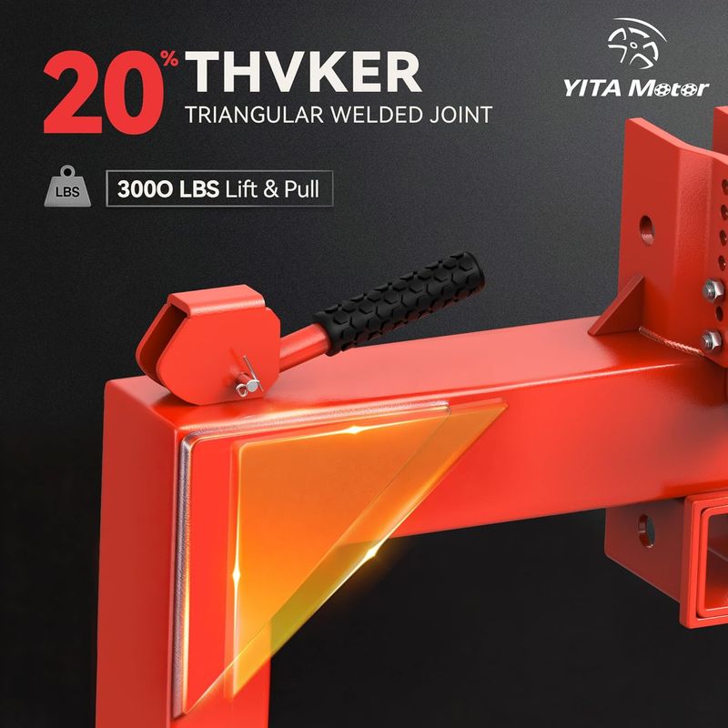 3000LBS LIFTING & TOWING CAPACITY: The heavy-duty reinforced 3 point hitch attachment is structurally stable and has 3000 lbs lifting capacity. The steel plates on both sides of the top hook are reinforced to a thickness of 0.16", The pin hooks have a limit function on both sides for increased stability and safety.