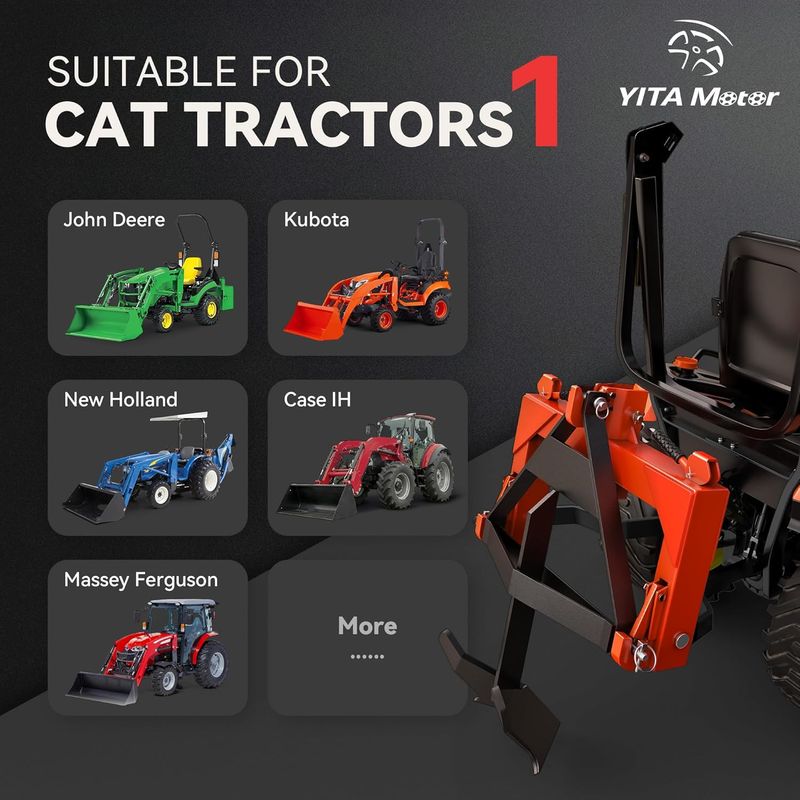 Compatible with CAT 1 3-Pt Tractor - like snowplows, mowers, and so on.