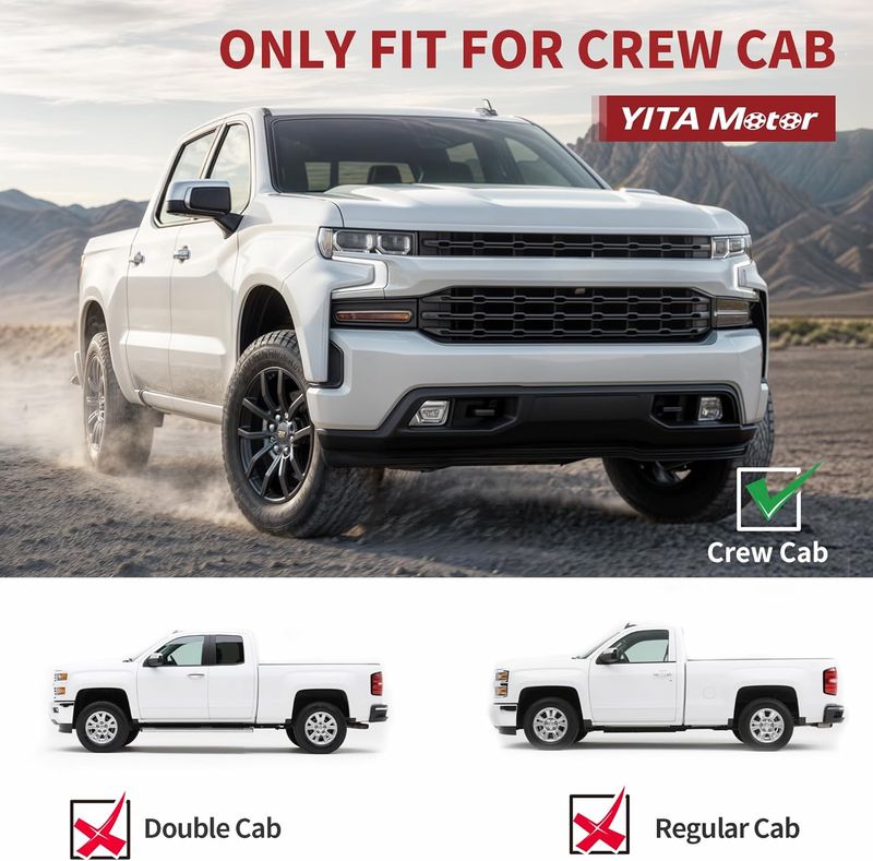 Custom Fit: YITAMOTOR running boards are compatible with 2019-2025 Chevrolet Silverado /GMC Sierra 1500 Crew Cab, 2020-2025 Silverado/Sierra 2500HD 3500HD Crew Cab (Excl. 2019 1500 LD), ensuring seamless integration and enhanced style