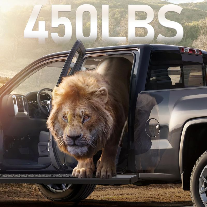 Strong & Reliable Build: Made with stainless steel that outperforms ordinary steel in rust resistance and durability, these side steps support up to 450 lbs per side; Combined with tough ABS step pads, they provide lasting reliability for passengers, pets, and heavy gear