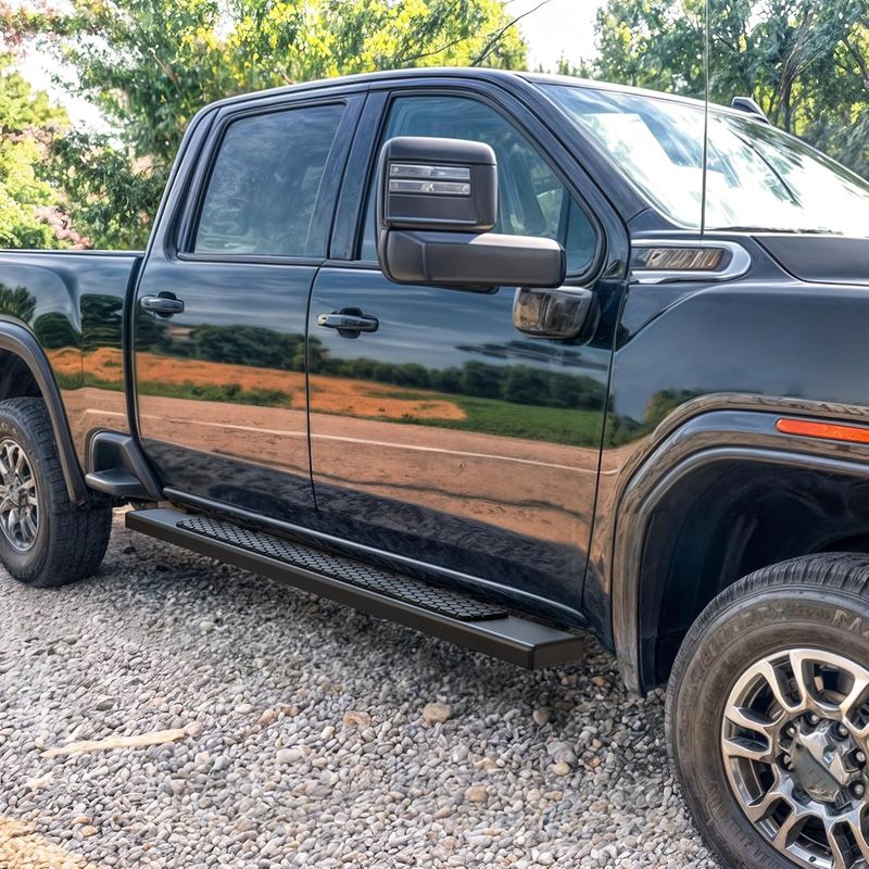 Rugged Protection: Step rails guard your truck's lower body from dings and scratches, while guarded ends prevent bumping knees and enhance the sleek, rugged look of your truck