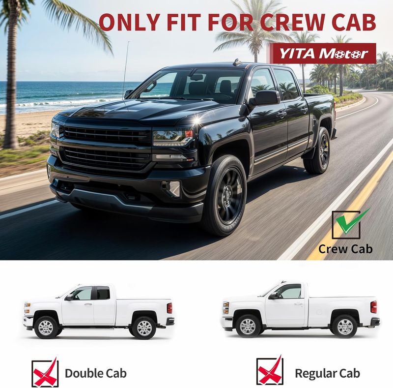 Vehicle Compatibility: Precisely engineered to be compatible with 2007-2018 Chevrolet Silverado /GMC Sierra 1500 Crew Cab, 2007-2019 Silverado/Sierra 2500 HD 3500 HD Crew Cab, matching manufacturer-set mounting points for a secure, no-drill installation and reliable performance