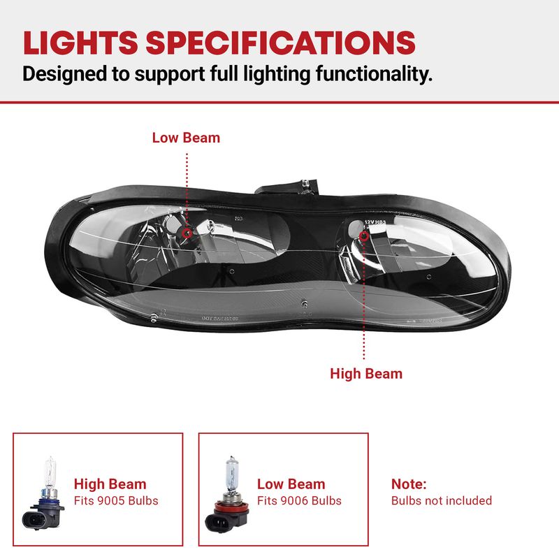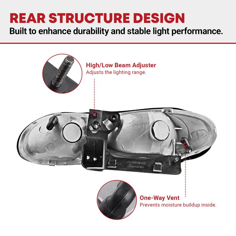 Our replacement headlights fit directly into your vehicle’s factory wiring harness for hassle-free installation. No additional modifications or drilling are required.