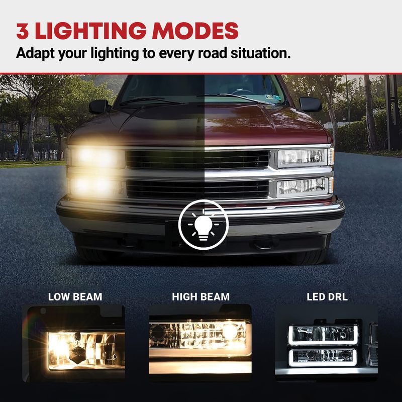 You can easily bolt-on replacement for your Chevy Silverado headlights, just connect the DRL to your car wiring. The attached user instruction makes the assembly more straightforward.