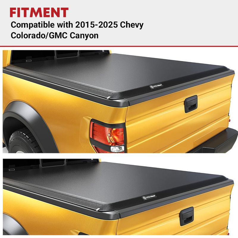 YITAMOTOR factory brand packaging, Each cover is custom-built to ensure precise compatibility with the 5'2“ bed of 2015-2025 Chevrolet Colorado & GMC Canyon. Made from high-quality, commercial-grade vinyl that will not stretch, fade or crack.