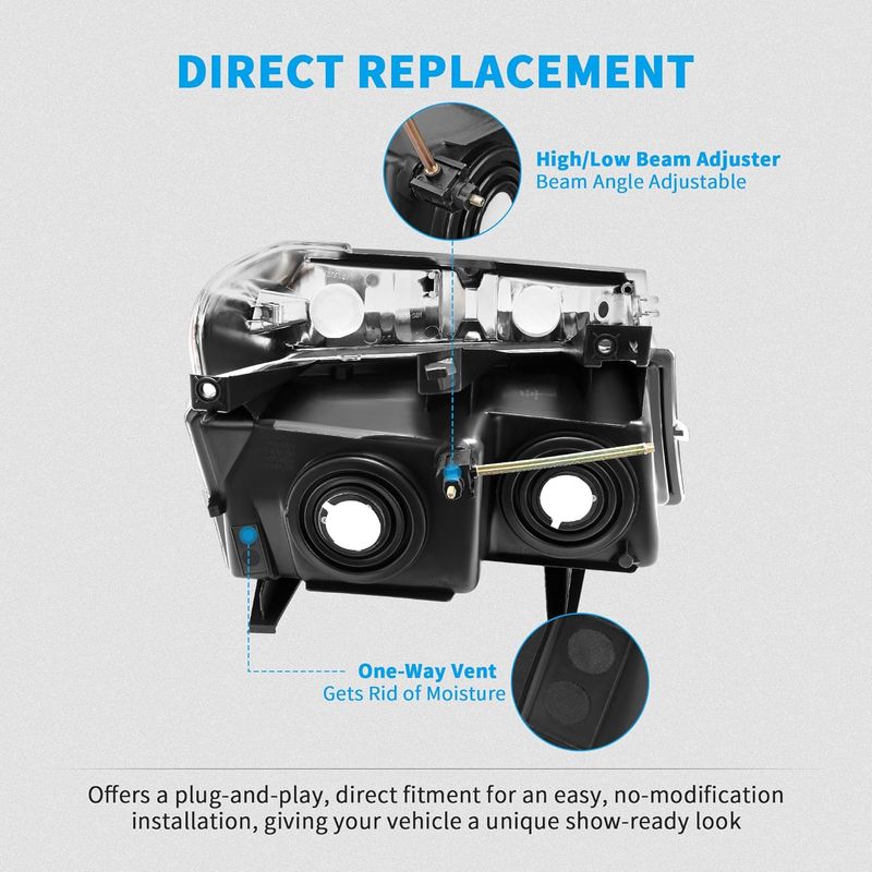 As a fully compatible replacement for factory parts, our bolt-on style headlights are designed for quick and easy installation, requiring no modification or drilling.