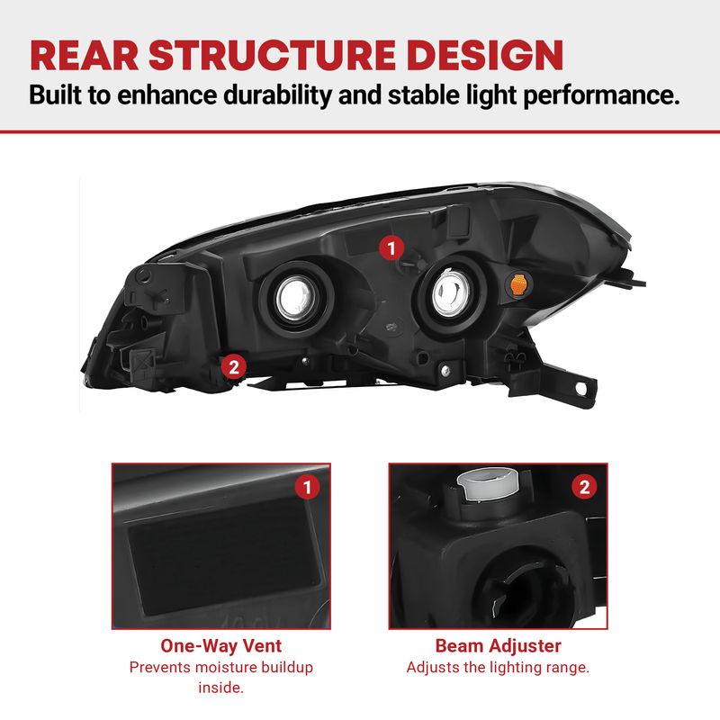 Improved illumination: the integrated metalized reflectors of this headlight assembly increase light distance for better visibility & driving safety in any dusky conditions