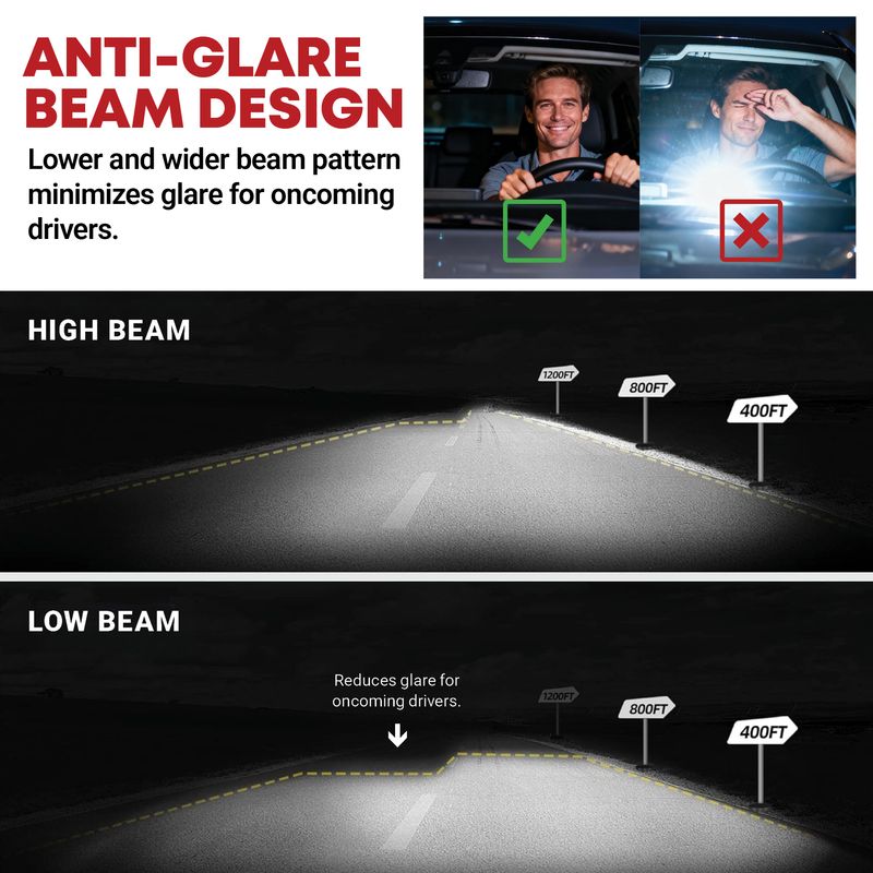 The reinforced housing and lens of the headlight can bear great impact and shock when you drive on any rough terrain or mountain road; enjoy your off-road adventures freely!