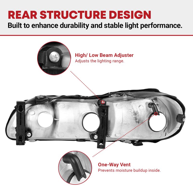 Our replacement headlights fit directly into your vehicle’s factory wiring harness for hassle-free installation. No additional modifications or drilling are required.