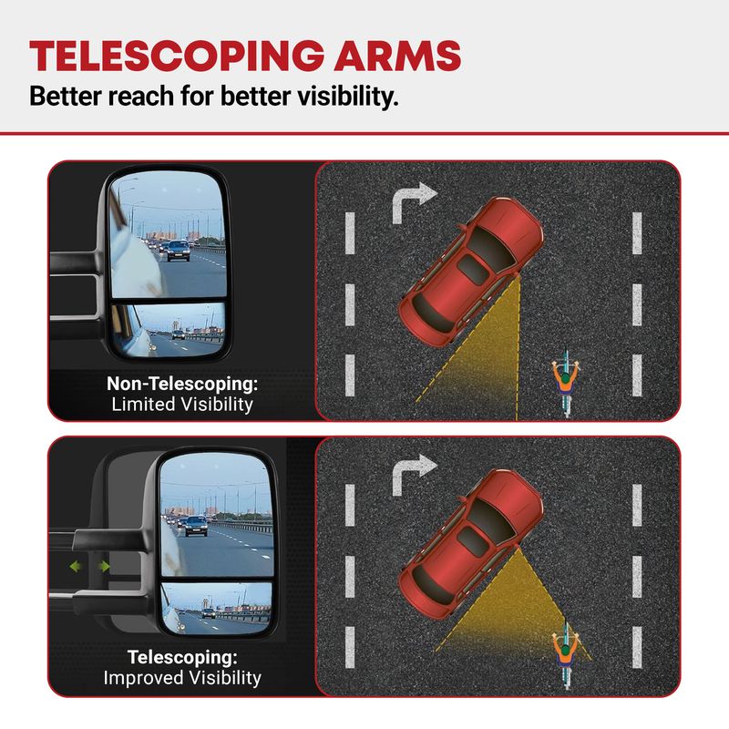 You need this MUST have extendable towing mirrors to KEEP YOUR DRIVING IN SAFETY.