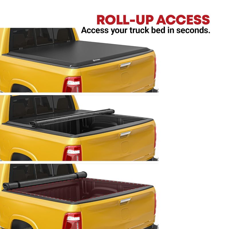 Can 100% Bed Access. Roll the cover towards the cab, and tightly secure with fastening buckles.