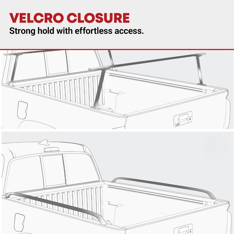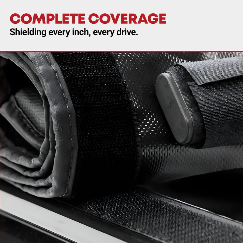 Complete Coverage of your truck bed, equipped with side Velcro strips and water-resistant seals.